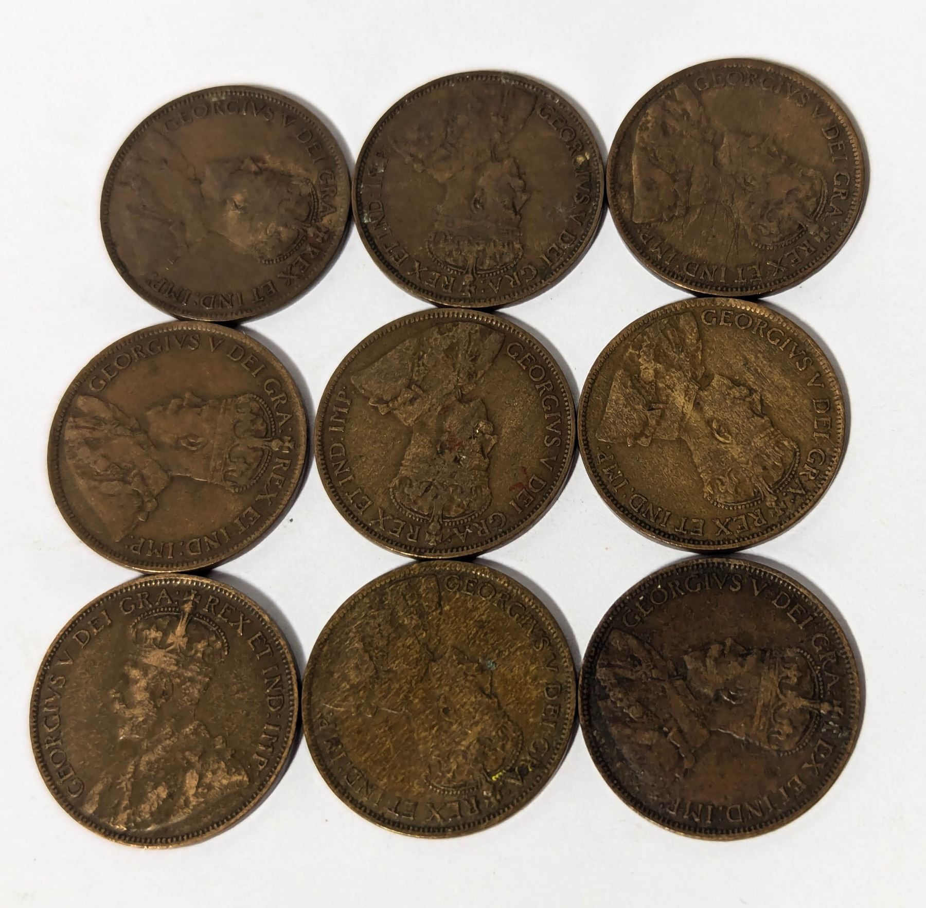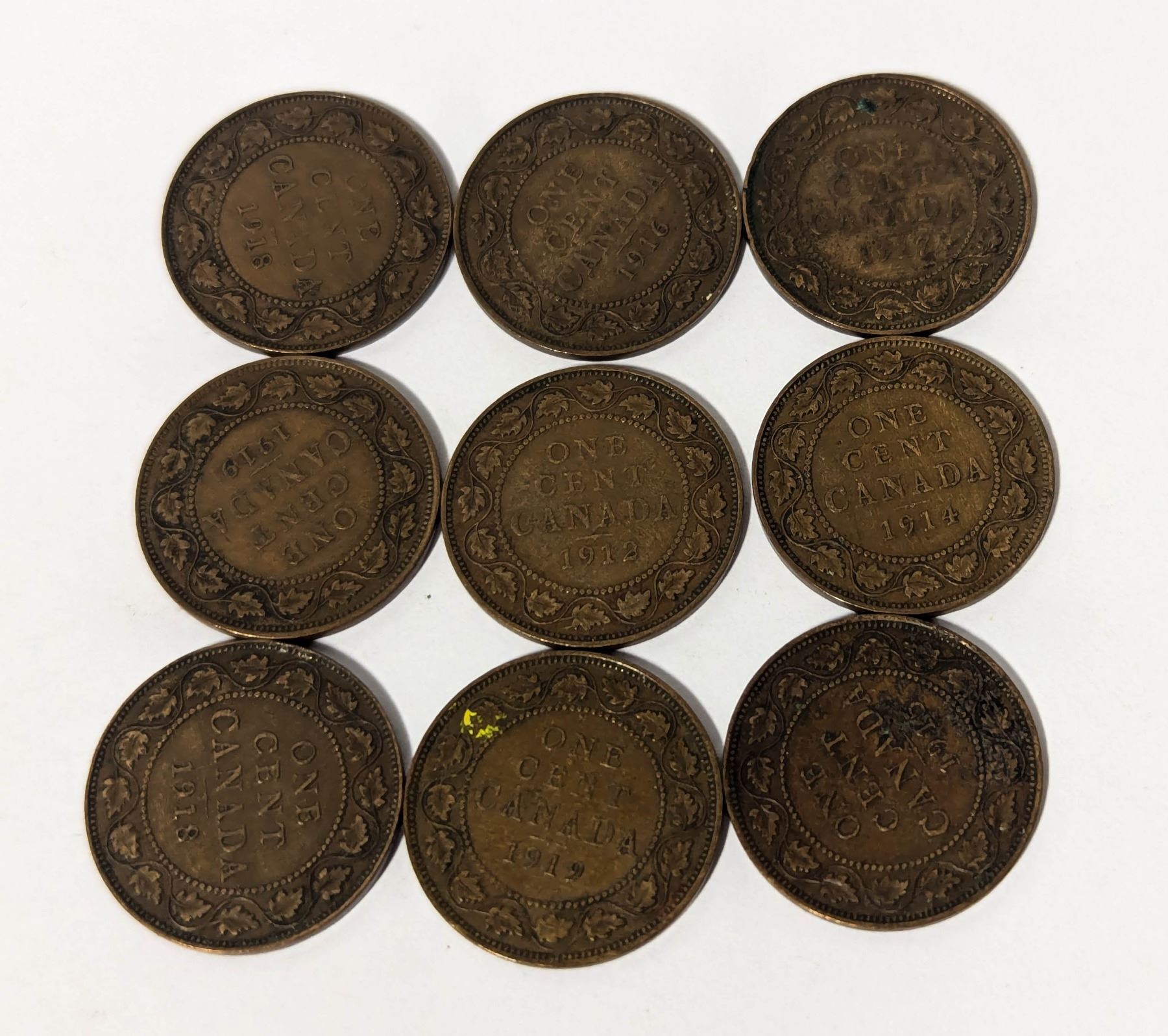 x9 VARIOUS DATES & GRADES CANADA LARGE 1c COINS