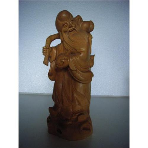 A fine yellow birch wood carving of the longevity god. 20th century.